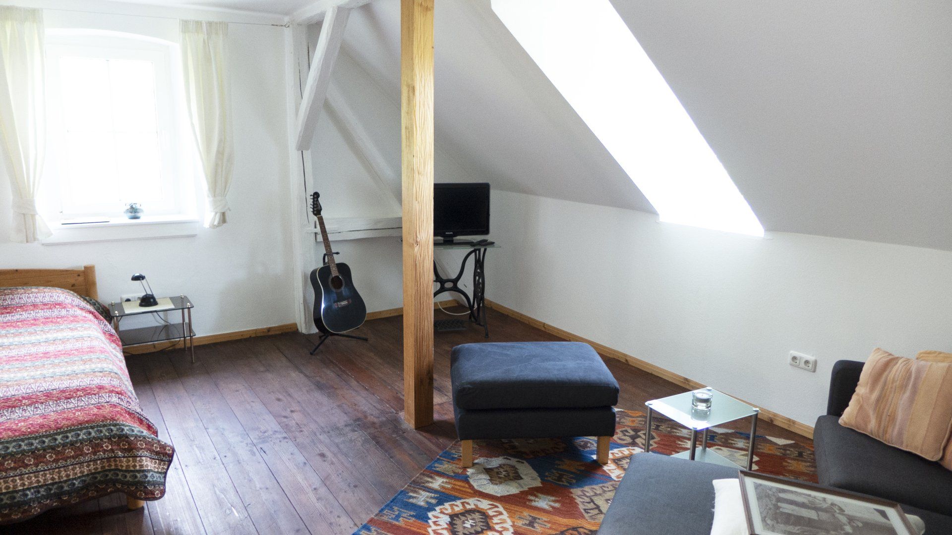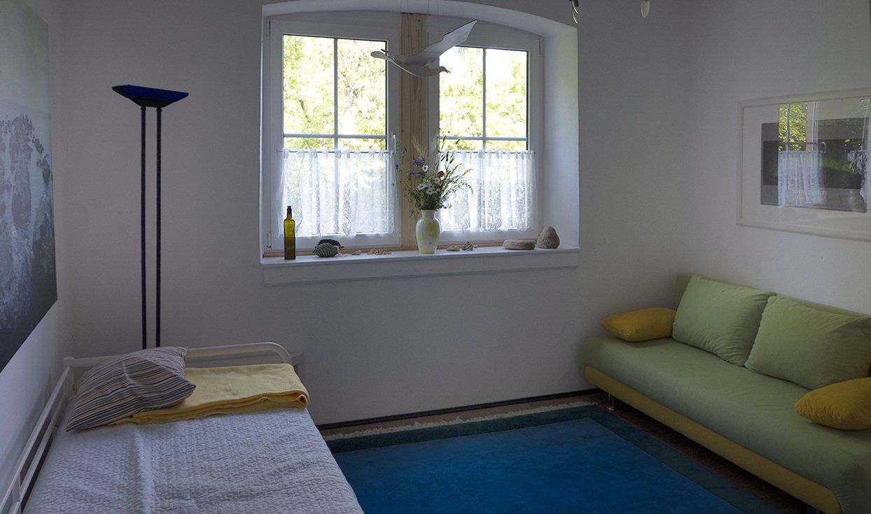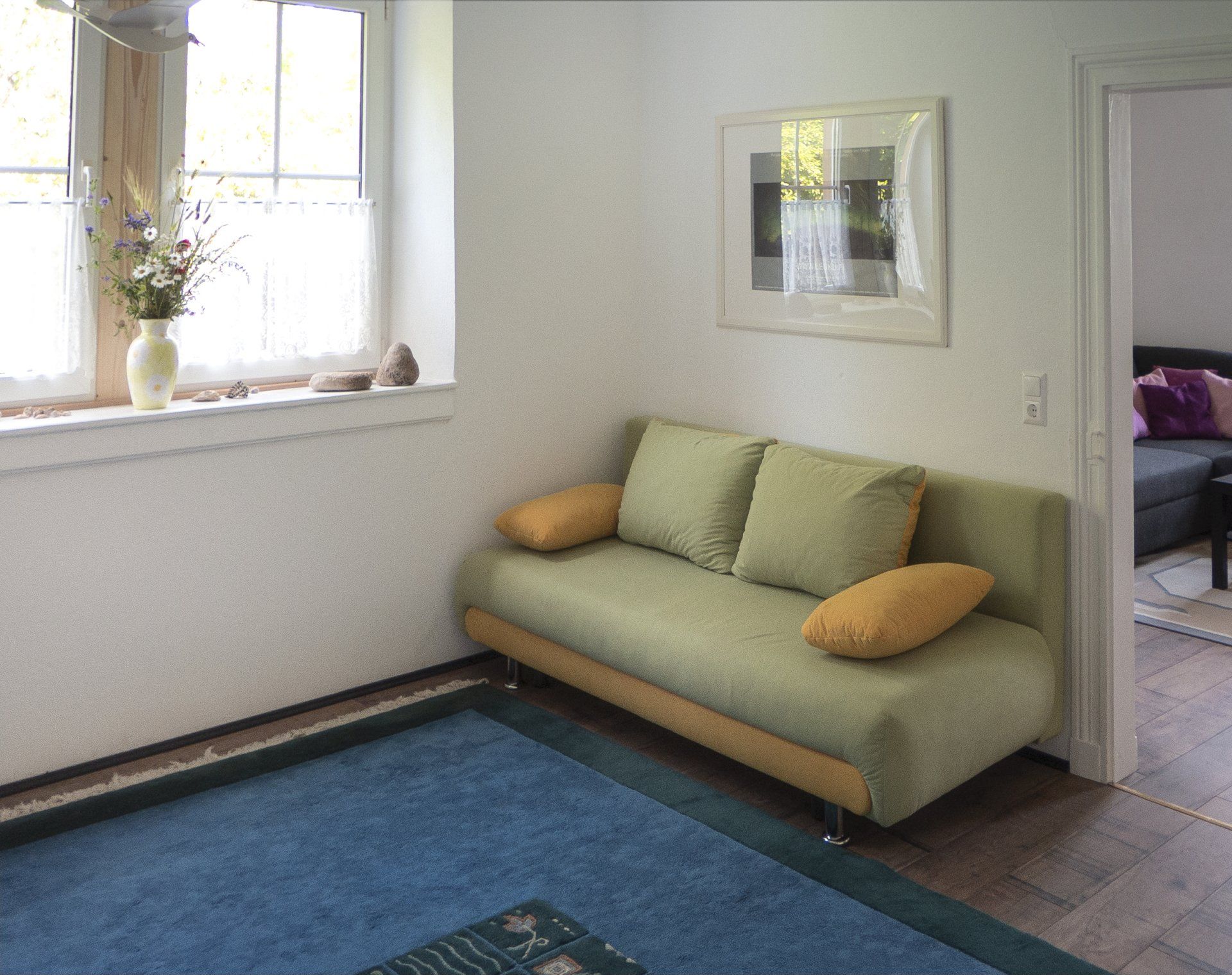 Alte, aufgearbeitete Holzböden und Türen, hohe Decken, Sprossenfenster mit Aussicht auf Wald und Wiesen, eine liebevoll gestaltete Einrichtung, Schwedenöfen und eine fahrbare Sauna sind Garanten für deine Erholung.